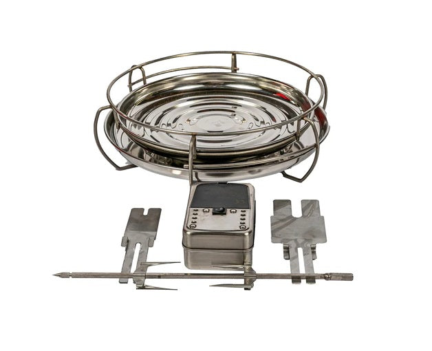 Brackets clips onto the BonBraai frame, supplied with spindle & stainless-steel battery-operated motor, spindle holds up to 4Kg of meat. BonBraai is not included