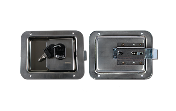 Application: flush fitting slam action locking handle for draw systems, steel enclosures or doors on vehicles or trailers.