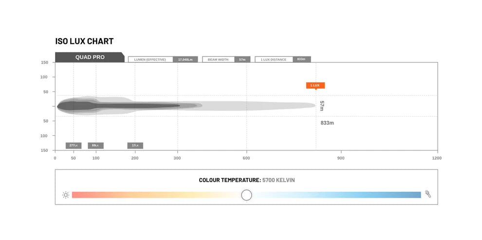 Our Quads showcase a glistening, 5700K color temperature, providing the necessary luminance to cut-through any obtrusive dust and other air-born particles.