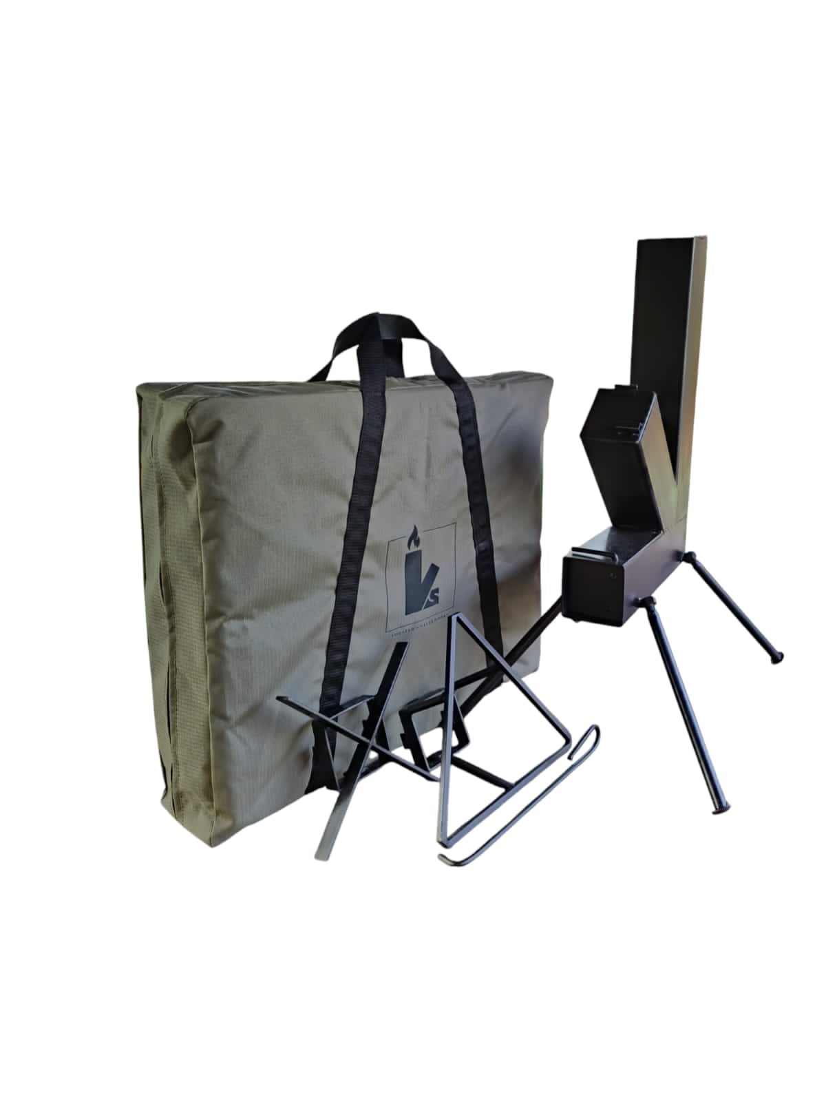 This Rocket stove is the ideal cooking solution for any camping or outdoor activity. It requires very little wood for cooking at camp and features an adjustable air flow hatch to control the fire.