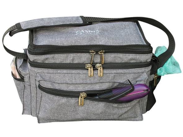 The vanity’s height allows for full-size toiletry containers and bottles, eliminating decanting beauty products in smaller containers. It also has a PVC lining to ensure effortless cleaning, an adjustable shoulder pad with an adjustable sling, a large front pocket, suitable for flat irons and hair accessories, and two smaller sides pockets, of which one is netted to allow airing for wet items. The main cavity has an adjustable 6-configuration divider and a single cavity lid, for small miscellaneous items and jewelry. Unquestionable quality bags manufactured in heavy-duty materials and heavy-duty zips and sliders.